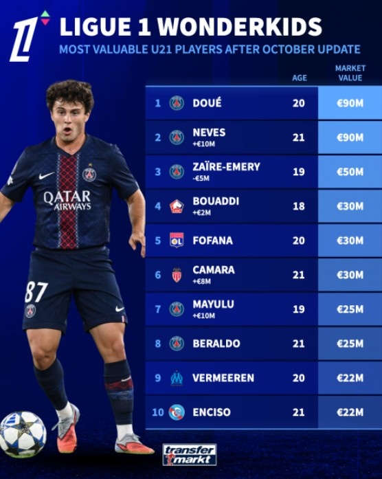 总体来讲,这份身价排行榜不仅突显了年轻球员的市场潜力,也反映了法甲联赛在青训领域的成功。随着这些年轻球员的发展,未来他们可能会成为更大的转会市场中的焦点,为各自的俱乐部创造更多的价值。